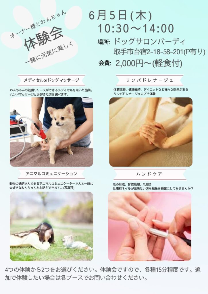 6月5日(木)10:30~14:00 お得な体験会を開催いたします